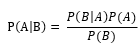 - P(A) : prior probability, i.e., the initial degree of belief in A.