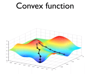 우리의 맨 처음 cost function에서는 위와 같이 convex function이 만들어져서 어느 점에서 시작하더라도 같은 최소값이 되게 된다. 그래서 cost function을 구성할 때 반드시 위와 같은 모양을 이루는지 확인해야 한다.