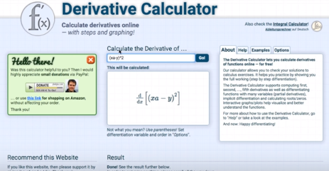 미분 계산은 위의 사이트에서 쉽게 할 수 있다고 한다.