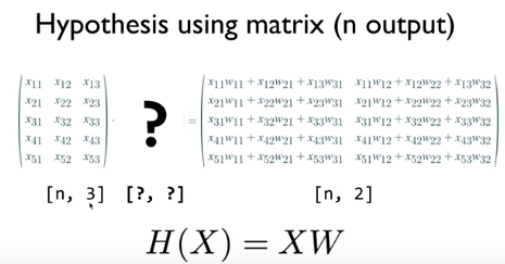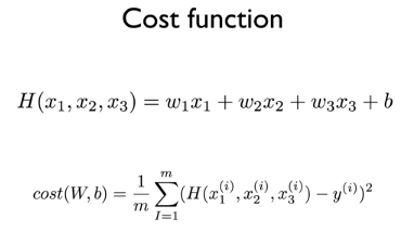 입력이 3개일 때 가설과 cost function은 위와 같은 모양이 될 것이다.
