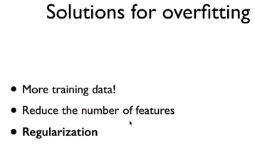 Overfitting을 해결하기 위해서는 더 많은 훈련 데이터를 확보하고, 중복된 feature을 줄이거나 일반화(Regularization)시킨다.
