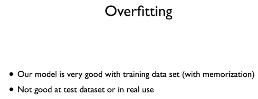 이번 시간에는 학습률을 어떻게 결정하면 좋을지, 데이터에 대한 전처리는 어떻게 할지, 머신 러닝에서 가장 큰 문제 중 하나인 overfitting 문제를 어떻게 해결할 것인지 배우도록 하겠다.