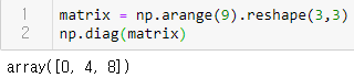 이라는 matrix에서 대각선 값인 0, 4, 8만 뽑아올 수 있다.