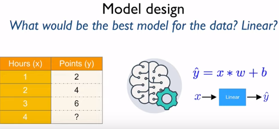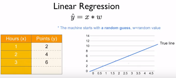 y hat = x * w + b의 형태를 만족한다. 그런데 이번 시간에는 처음 머신러닝을 배우는 사람들을 위하여 편향인 b를 제거하여 더 간단하게 학습할 수 있도록 한다.