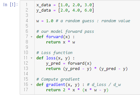 위의 예에서는 loss 함수를 w로 미분한 값이 2x(xw - y)이어서 gradient 함수 모양이 저런거지, 본인의 손실 함수에 적용하려면 식을 그에 맞춰서 바꾸면 된다.