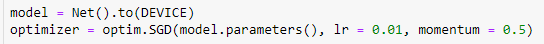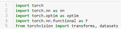Net이라는 클래스를 정의한다. 여기서 nn.Conv2d를 사용하는데, 첫번째 파라미터는 in_channels로 입력 채널 수를 지정하고, 두번째 파라미터는 out_channels로 출력 채널 수를 지정한다. 우리가 사용할 데이터는 흑백 데이터이므로 색상 채널이 하나이고, 위의 코드에 따르면 첫 컨볼루션 계층에서 10개의 특징 맵을 생성하고, 두번째 컨볼루션 계층에서 10개의 특징 맵을 받아서 20개의 특징 맵을 만든다. kernel_size는 각 컨볼루션 계층의 커널(필터) 크기를 지정할 수 있게 해준다. 꼭 정사각형이 아니여도 된다는 점을 기억하자.