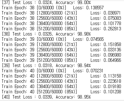 CNN을 이용하니 위와 같이 정확도가 거의 99%로 올라간 것을 볼 수 있다.