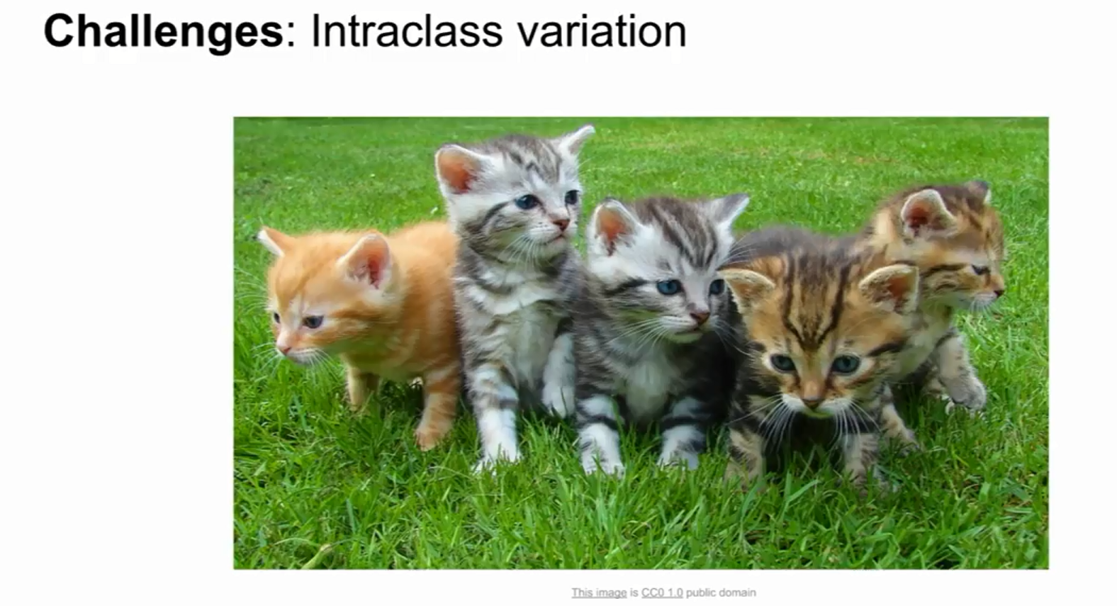 여섯번째 주의할 점은 Intraclass variation, 즉 하나의 클래스 내에도 다양성이 존재할 수 있다는 것이다. 예를 들어, 고양이에 따라 생김새, 크기, 색, 나이가 각양각색인 것이다.