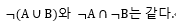 - 논리합의 전체 부정은 각각의 부정의 논리곱이다.