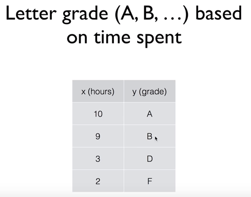 Regression의 학습하는 데이터, Training data의 예시이다. 몇 시간동안 공부했더니 성적이 어떻게 나왔는지 알려주는 것이고 이는 0~100점의 넓은 범위에 분포되어있으니 regression을 사용해서 학습하면 되겠다.